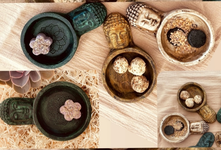 Sahumador de cemento Buddha pintado